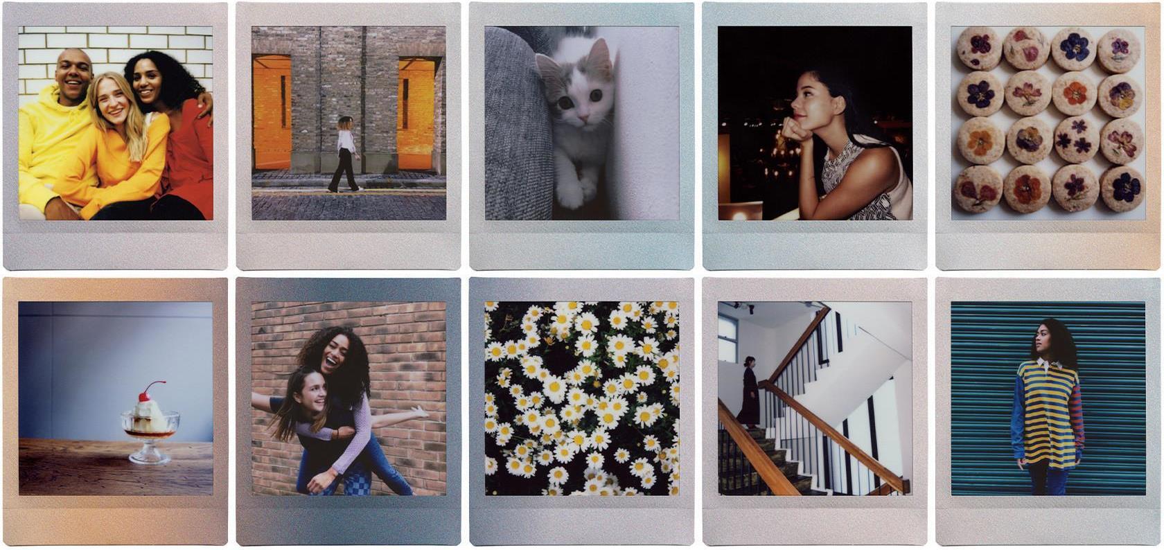 Bewundern Sie die Aussicht, indem Sie den Rahmen Ihrer Abzüge mit dem verträumten Instax Square Sunset-Sofortbildfilm im Sonnenuntergangslook gestalten.