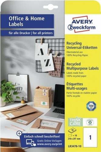 Avery LR3478-10 selbstklebendes Etikett Rechteck Dauerhaft Weiß 10 Stück(e) (LR3478-10)