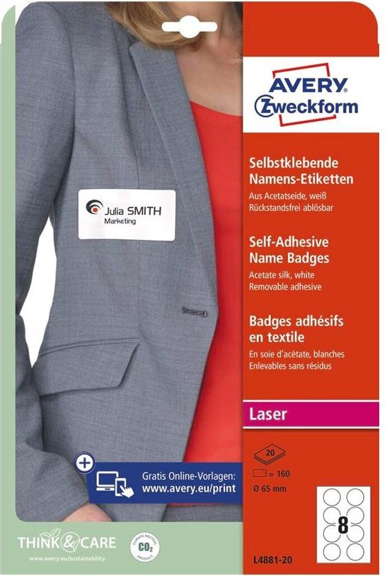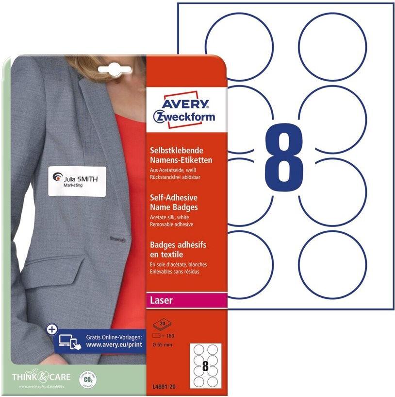 Avery L4881-20 selbstklebendes Etikett Rund Entfernbar Weiß 160 Stück(e) (L4881-20)