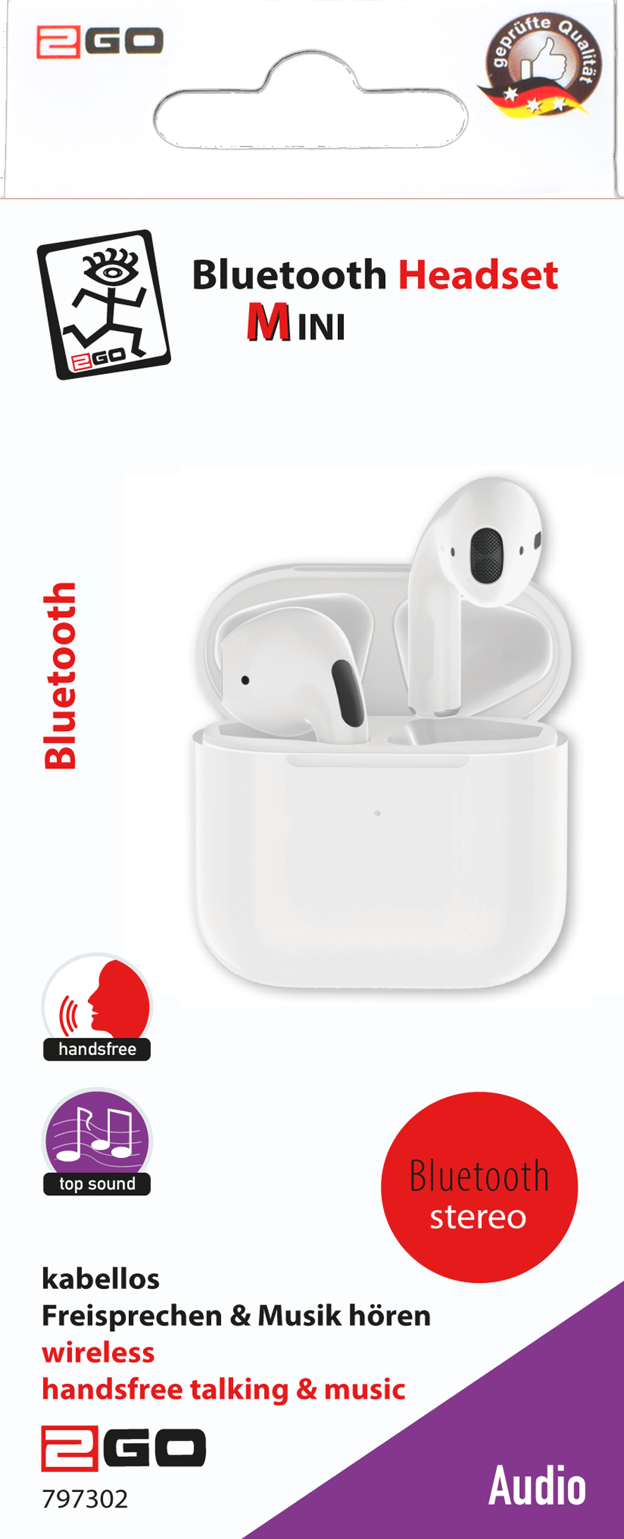 2GO TWS Mini Kopfhörer Kabellos im Ohr Anrufe/Musik Bluetooth Weiß (797302)