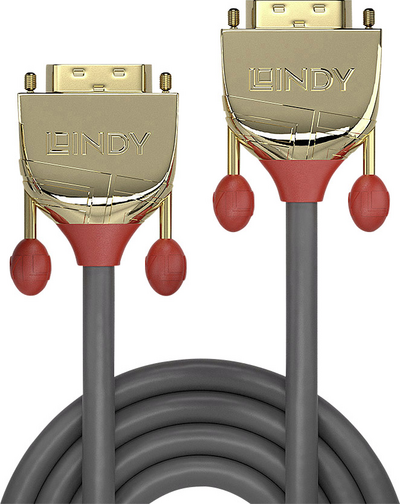 Lindy Gold - DVI-Kabel - Dual Link - DVI-D (M) bis DVI-D (M) - 2,0m - Daumenschrauben - Grau (36202)
