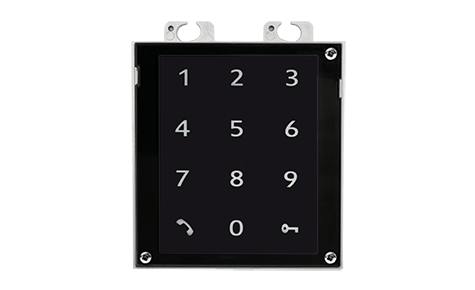 Das Touch-Keypad-Modul stellt eine weitere Option für die 2N IP Verso dar. Um die Tür zu öffnen, genügt es, den richtigen PIN-Code einzugeben. Einen Zutrittscode können viele Benutzer gemeinsam benutzen oder jeder kann einen eigenen Code haben. Das Touch-Keypad-Modul ist für den Einsatz im Innen- sowie Außenbereich geeignet.