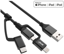 • 3-in-1 Lade- und Datenkabel zur Verwendung von Mobiltelefonen mit Lightning, Micro-USB oder USB Typ-C Anschluss