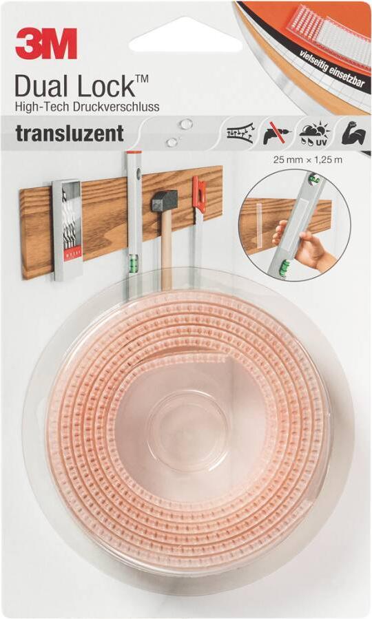 3M Dual Lock Klett-Power High-Tech Druckverschluss, Rolle 25 mm x 1,25 m, selbstklebend, wasserfest, für Innen- und - 1 Stück (SJ356025)