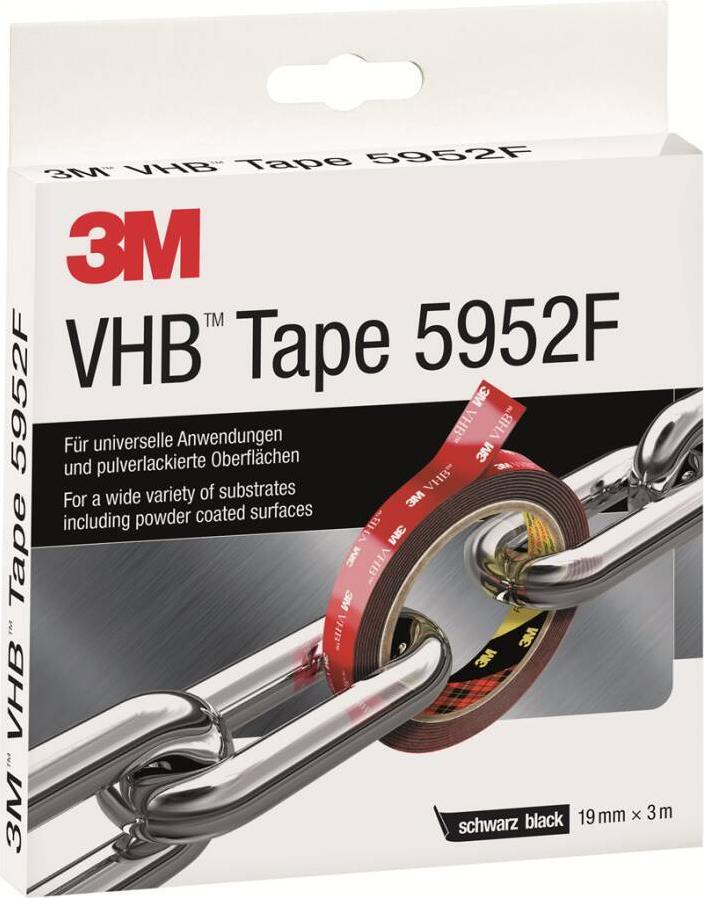 3M VHB Hochleistungsklebeband 5952F, 19 mm x 3 m, schwarz doppelseitig klebend, anpassungsfähig für schwierig zu - 1 Stück (5952193)