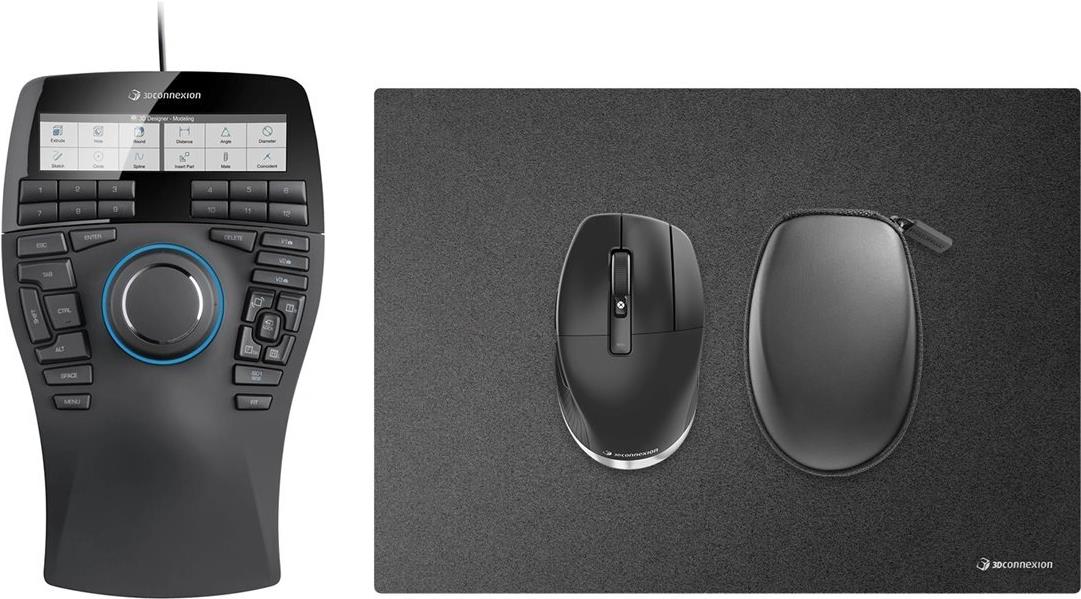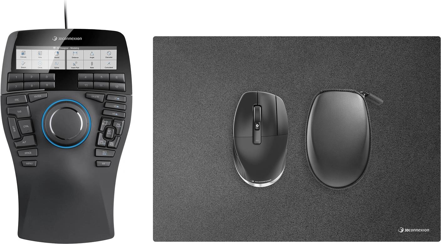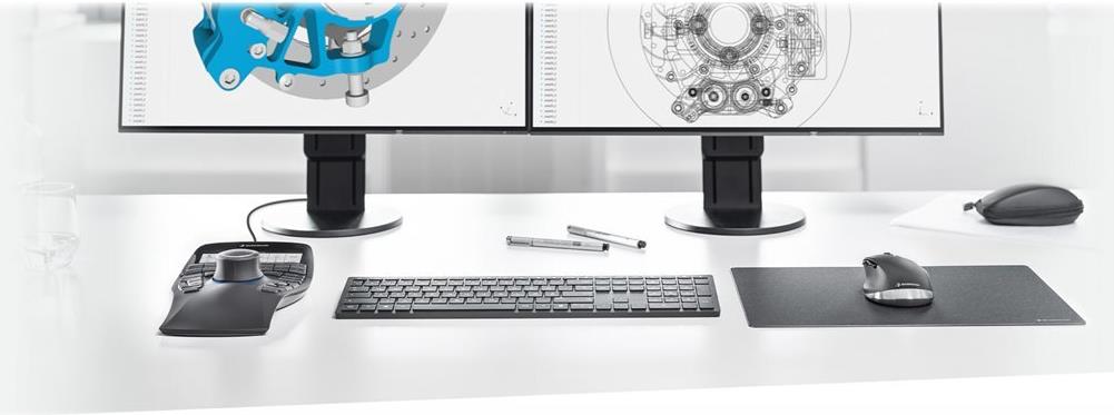 Mit der Kombination aus den 3Dconnexion-Produkten SpaceMouse Enterprise, CadMouse Pro Wireless und CadMouse Pad können Synergien erzeugt werden, die mit einem herkömmlichen Setup bestehend aus Maus und Tastatur nicht möglich sind. Die SpaceMouse Enterprise positioniert Objekte und Ansichten im dreidimensionalen Raum, mit der CadMouse Pro Wireless werden sie ausgewählt oder erstellt. 3D Profis arbeiten so besonders ergonomisch.