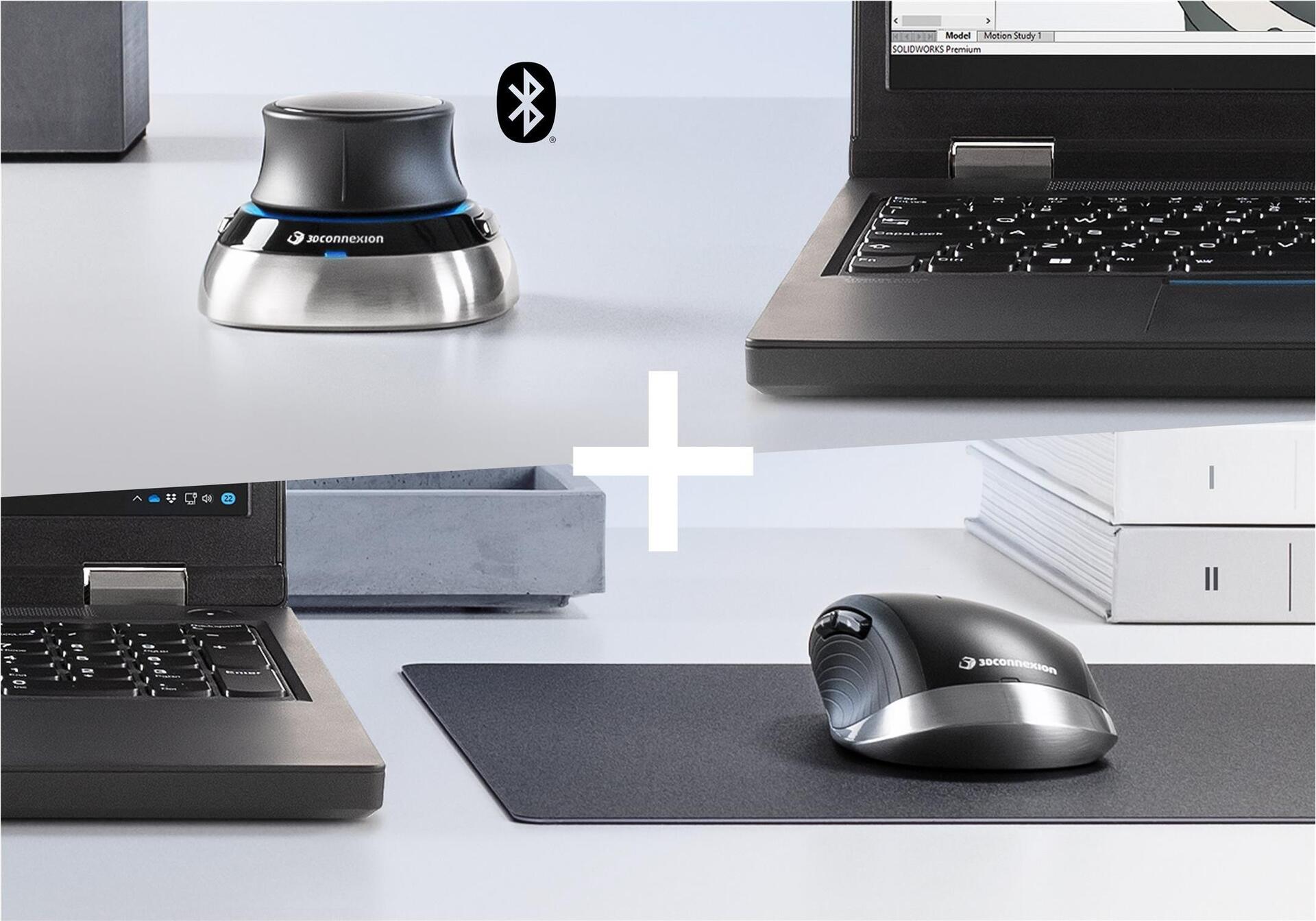 Das SpaceMouse Wireless Kit 2 kombiniert Topleistung mit ultimativer Mobilität und steigert die Effizienz, die Qualität und den Komfort, die mit einer herkömmlichen Maus und Tastatur nicht erreicht werden kann. 3Dconnexions ergonomischer „Beidhändiger-Workflow" umfasst neben der SpaceMouse Wireless - Bluetooth Edition auch die CadMouse Compact Wireless für die natürlichste, komfortabelste und agilste Art der Interaktion mit Designs und Projekten. Ob am Schreibtisch oder unterwegs, das SpaceMouse Wireless Kit 2 ist ein mobiles, unverzichtbares ToolKit für jeden Profi.