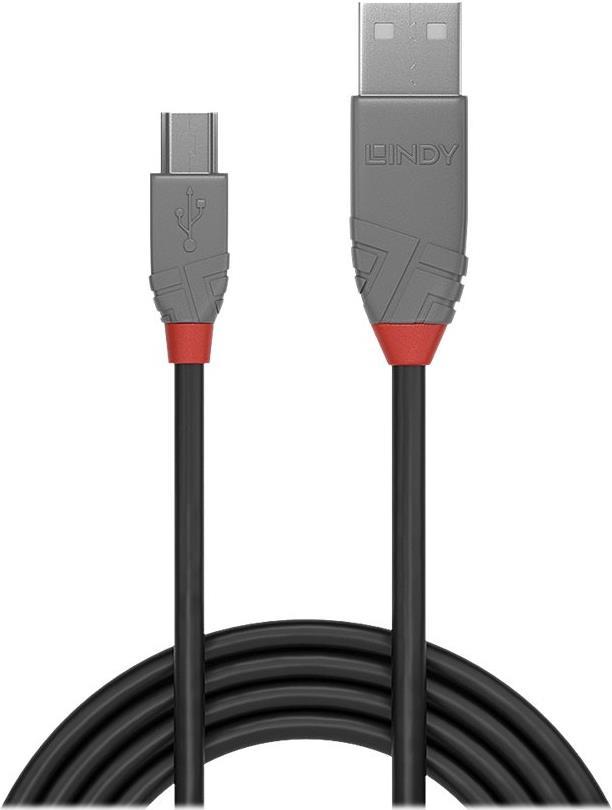 Lindy Anthra Line - USB-Kabel - USB (M) bis Mini-USB, Typ B (M) - USB2.0 - 3,0m - rund - Schwarz (36724)