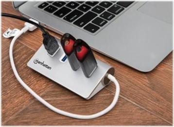 Dieser Manhattan USB 3.0 Hub erweitert Ihren PC oder Laptop um vier USB 3.0-Ports für Peripherie und mobile Geräte mit Übertragungsraten bis zu 5 Gbit/s. Dabei sind alle Ports vollständig abwärtskompatibel zu vorherigen USB-Standards. Mit Plug&Play, Hot-Swap-Fähigkeit, Mac- und Windows-Kompatibilität sowie einem kompakten, robusten Aluminium ist dieser Hub perfekt geeignet für die Nutzung zu Hause oder im Büro.