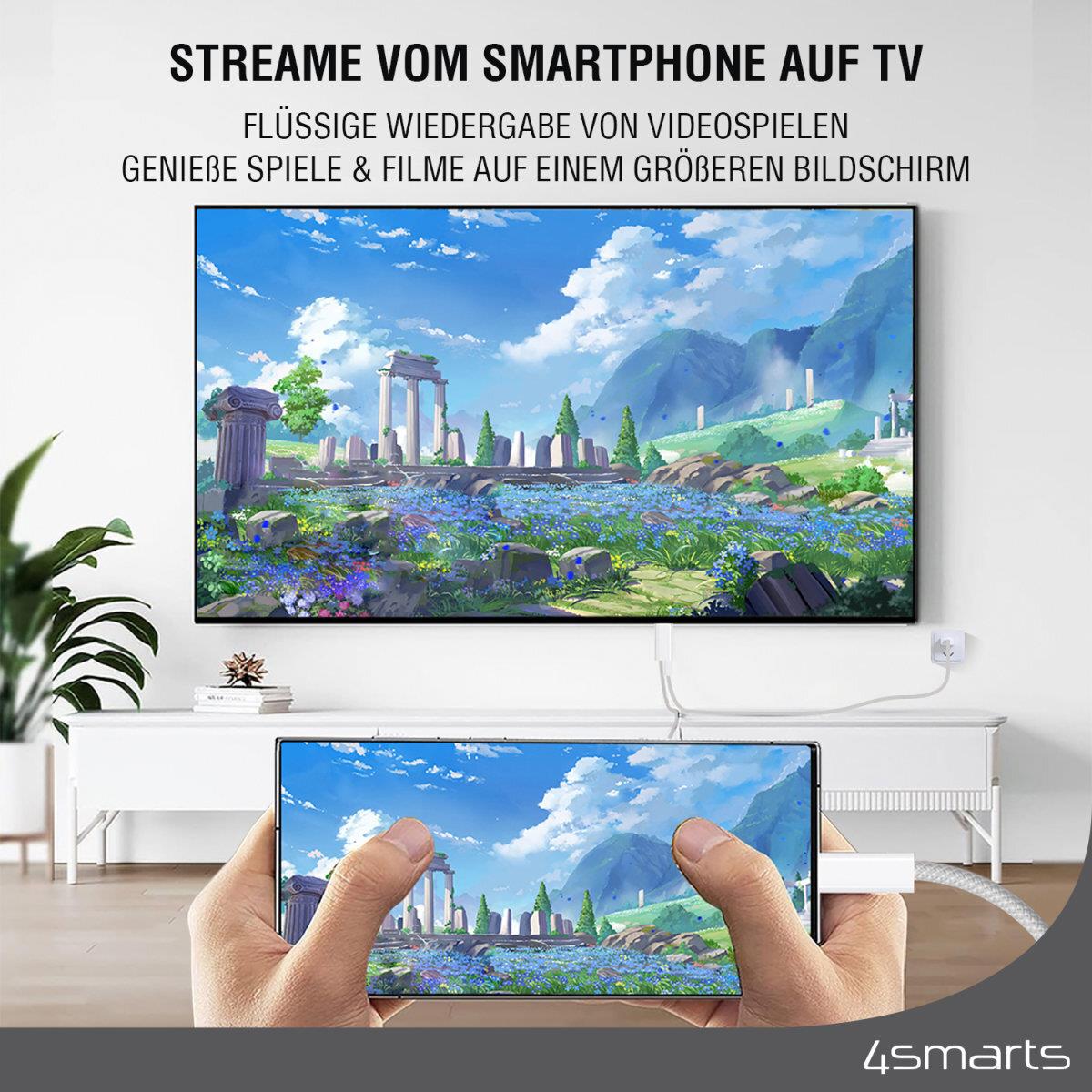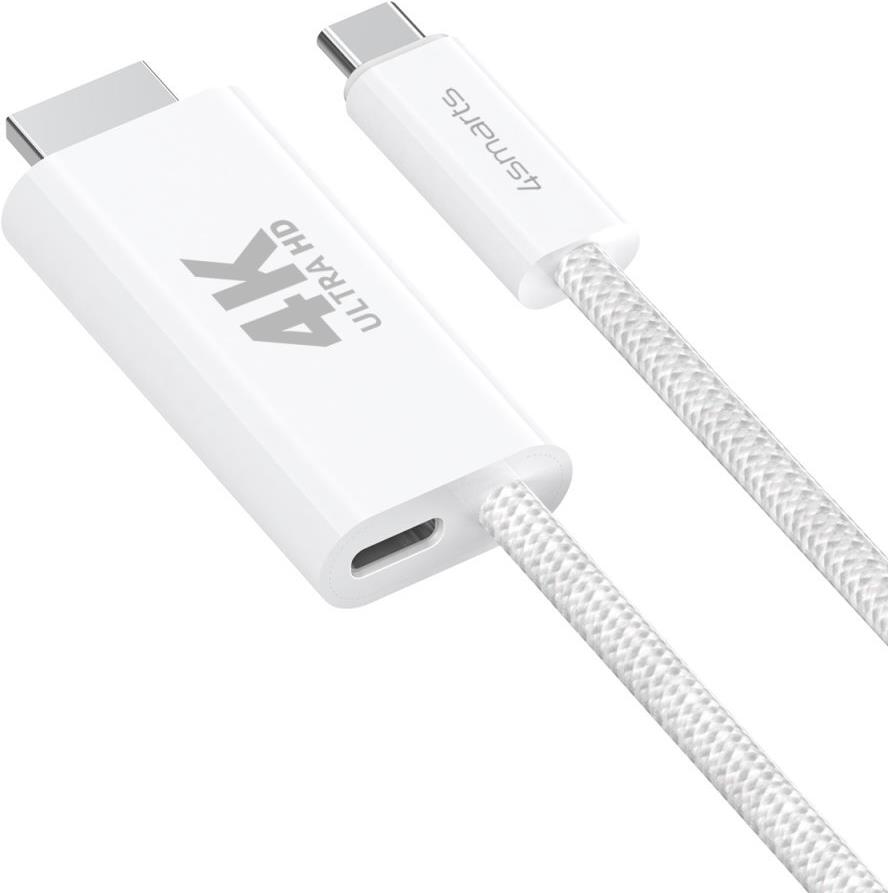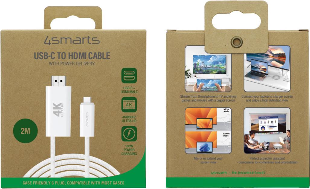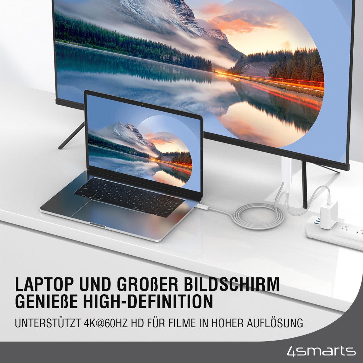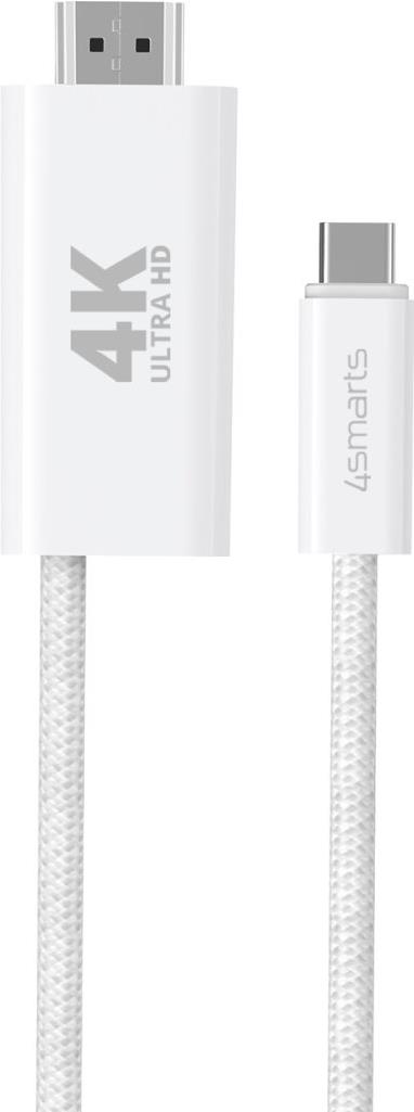 4smarts 540957. Kabellänge: 2 m, Anschluss 1: USB C, Steckverbinder 1 Geschlecht: Männlich, Anschluss 2: HDMI Typ A (Standard), Steckverbinder 2 Geschlecht: Männlich/Weiblich, Produktfarbe: Weiß (540957)