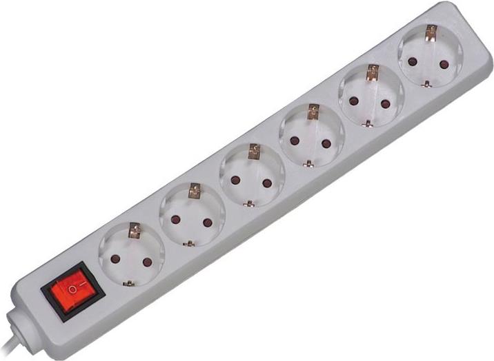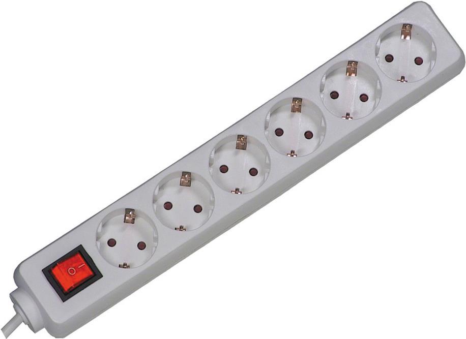 6- fach Steckdosenleiste Kunststoff, genietetSteckdosen um 45° gedreht2 poliger Schalter.