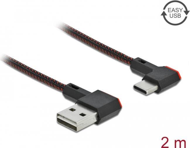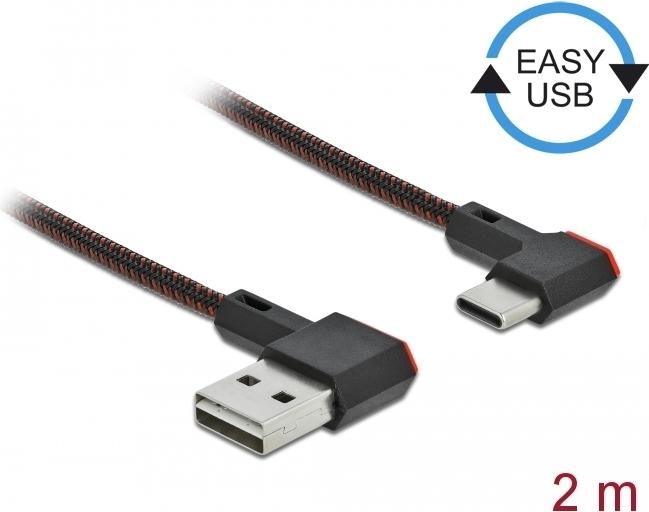DeLOCK Easy - USB-Kabel - USB (M) links/rechts abgewinkelt, umkehrbar bis USB-C (M) links/rechts abgewinkelt, umkehrbar - USB2.0 - 2,0m - Schwarz (85283)
