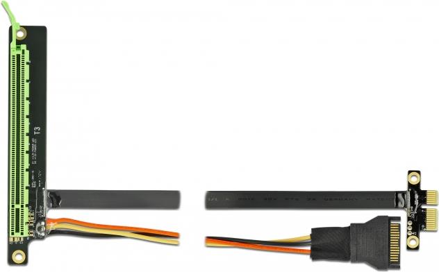 Diese PCI Express Riser Karte von Delock dient dem Anschluss einer PCI Express x16 Karte. Das flexible Kabel ermöglicht eine platzsparende Installation im Computer Gehäuse.