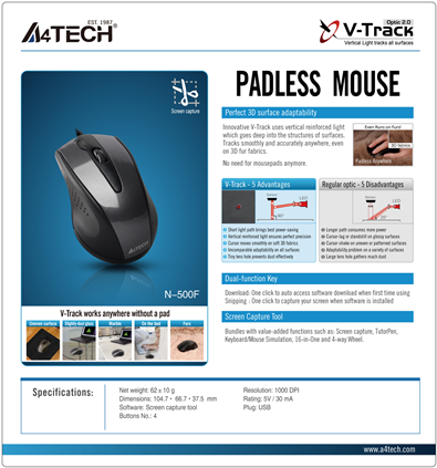 Maus A4TECH 3 Tas. N-500F V-Track Sensor wired schwarz (N-500F)