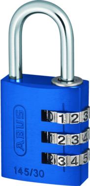 Das Vorhangschloss ABUS 145 besteht aus einem massiven Aluminiumschlosskörper und einem Stahl-Bügel.