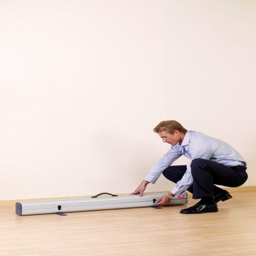 Mobile Projektionsleinwand zur Bodenaufstellung, perfekt für Präsentationen unterwegs. Empfohlen, wenn keine feste Leinwand vorhanden ist. Einfache Aufstellung. Besonders mobil in leichtem Aluminiumkoffer: nur 9 kg. Größe der Projektionsfläche: 119 x 90 cm.