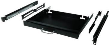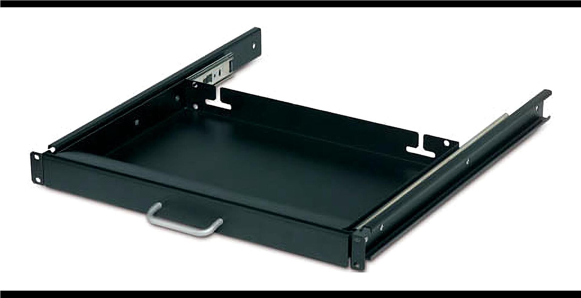 Das Schubfach zum Herausziehen bietet einen einfachen Zugang und eine aufgeräumte Aufnahme von 17-Zoll-Standardtastaturen.