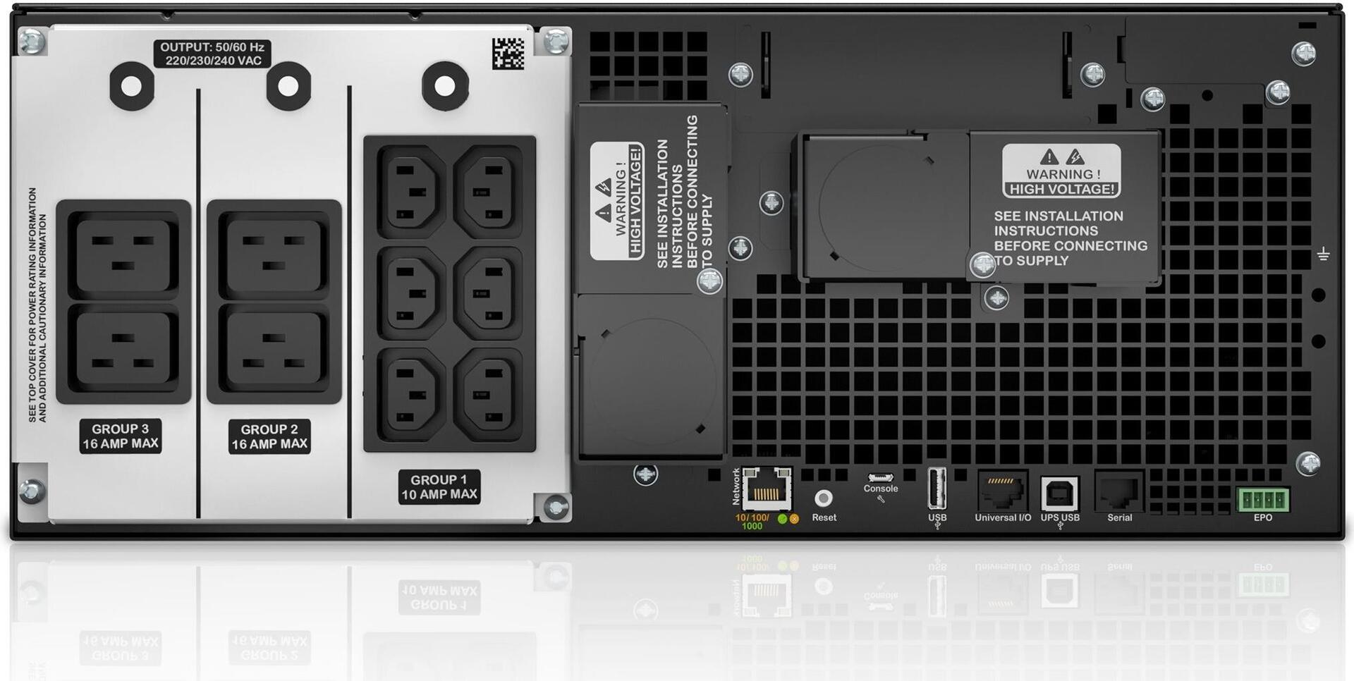 | Schnittstellen | 1 x Verwaltung (Ethernet) - RJ-45 1 x Verwaltung (USB) - 4-poliger USB Typ B 1 x EPO (emergency power off) 1 x seriell - RJ-45 |