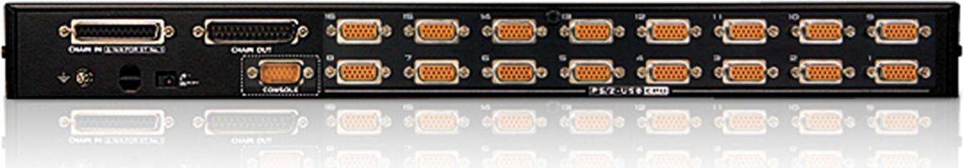 | Schnittstellen | Tastatur / Maus / Video / USB : 16 x 15-polig SPHD 1 x Kaskadierung - DB-25 1 x RJ-11 - Management 1 x USB - Type A Tastatur / Maus / Video / USB : 1 x 18-polig SPHD 1 x Kaskadierung - DB-25 |