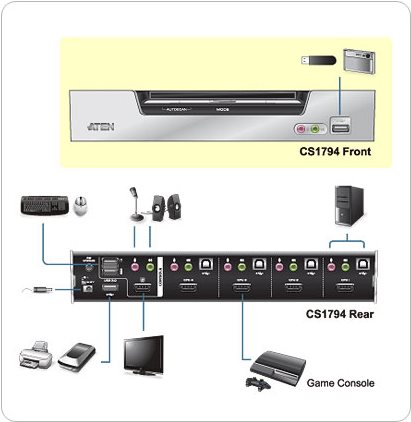 | Produktbeschreibung | ATEN CubiQ CS1794 USB 2.0 HDMI KVMP Switch - KVM-/Audio-Switch - 4 Anschlüsse - Desktop |