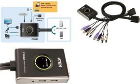 Das KVM Switch von ATEN tut seine Arbeit und bietet für meine Zwecke auch eine ausreichende Länge der Anschlusskabel. Wenn die zwei zu nutzenden Geräte allerdings unter oder auf einem größeren/höheren Tisch stehen, kann es knapp werden. Ich musste ein Kabelstrang an eine auf dem Tisch stehende Dockingstation anschließen und das zwiete Ende unter den Tisch zu einem Desktop-PC wwas gerade so noch reichte. Bedenken muss man also, dass beim Verlegen u.U. mehr Länge benötigt wird. Das Umschalten klappt einfach über den mitgelieferten Schalter, den man bequem auf dem Tisch neben dem Monitor zB oder auch geklebt an einer anderen Stelle befestigen kann. Da ich bereits mehrfahc mit KVM-Switches gearbeitet habe, weiß ich, dass es mit der Zeit vorkommen kann, dass Monitor leicht zu flimmern anfangen, wenn häufiger umgeschaltet werden muss. Das KVM ist eben ein Zwischenstück und keine hochwertige Grafikkarte oder Mainboard, an das man seien Peripherie anschließt, daher kann es schon zu optischen leichten Einschränkungen kommen oder zu Verzögerungen in der Signalübertragung Tastatur und Maus. Dies ging mit diesem KVM recht gut. Es bleibt abzuwarten, ob und wann evtl. die Qualität sinkt. Direktanschluss an den Rechner ist natürlich immer besser, wie Verlänegrungen oder Umwandler und andere Zwischengeräte, die die Signale emulieren, aber manchmal eben von Nöten. Alles in Allem macht das KVM einen soliden guten Eindruck und hält hoffentlich auch entsprechend langlebig.