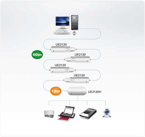 - Erweitert den Übertragungsweg zum USB-Gerät auf bis zu 12 m