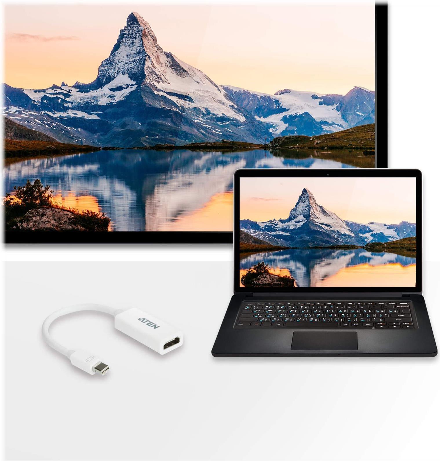 ATEN VC980 - Video- / Audio-Adapter - DisplayPort / HDMI - Mini-DisplayPort (M) - HDMI, 19-polig (W) - 19cm - weiß (VC980-AT)
