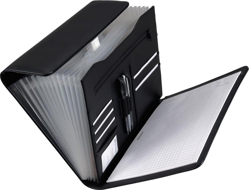 Alassio Fächermappe "VADO", DIN A4, Lederimitat, schwarz 12 Fächer, Reißverschluss, 4 Visitenkartenfächer (31511)