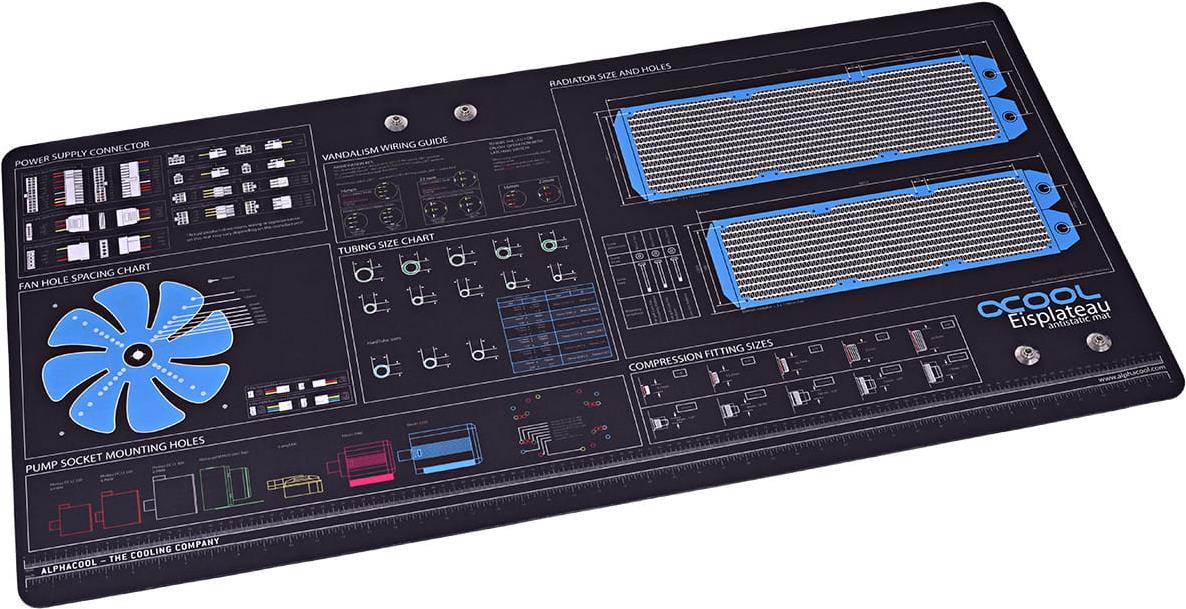 Ein sauberer Arbeitsplatz ist die Voraussetzung für ein erfolgreiches Arbeiten und ein gutes Ergebnis. Das Alphacool Eisplateau bietet dafür die Grundlage und alle wichtigen Maße und Daten sind immer zur Hand.