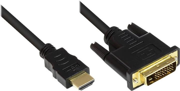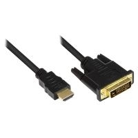 Anschlusskabel HDMI 19pol Stecker an DVI-D 24+1 Stecker, 24K vergoldete Stecker und Kupferkontakte, OFC, schwarz, 1m, Good Connections (GC-M0008)