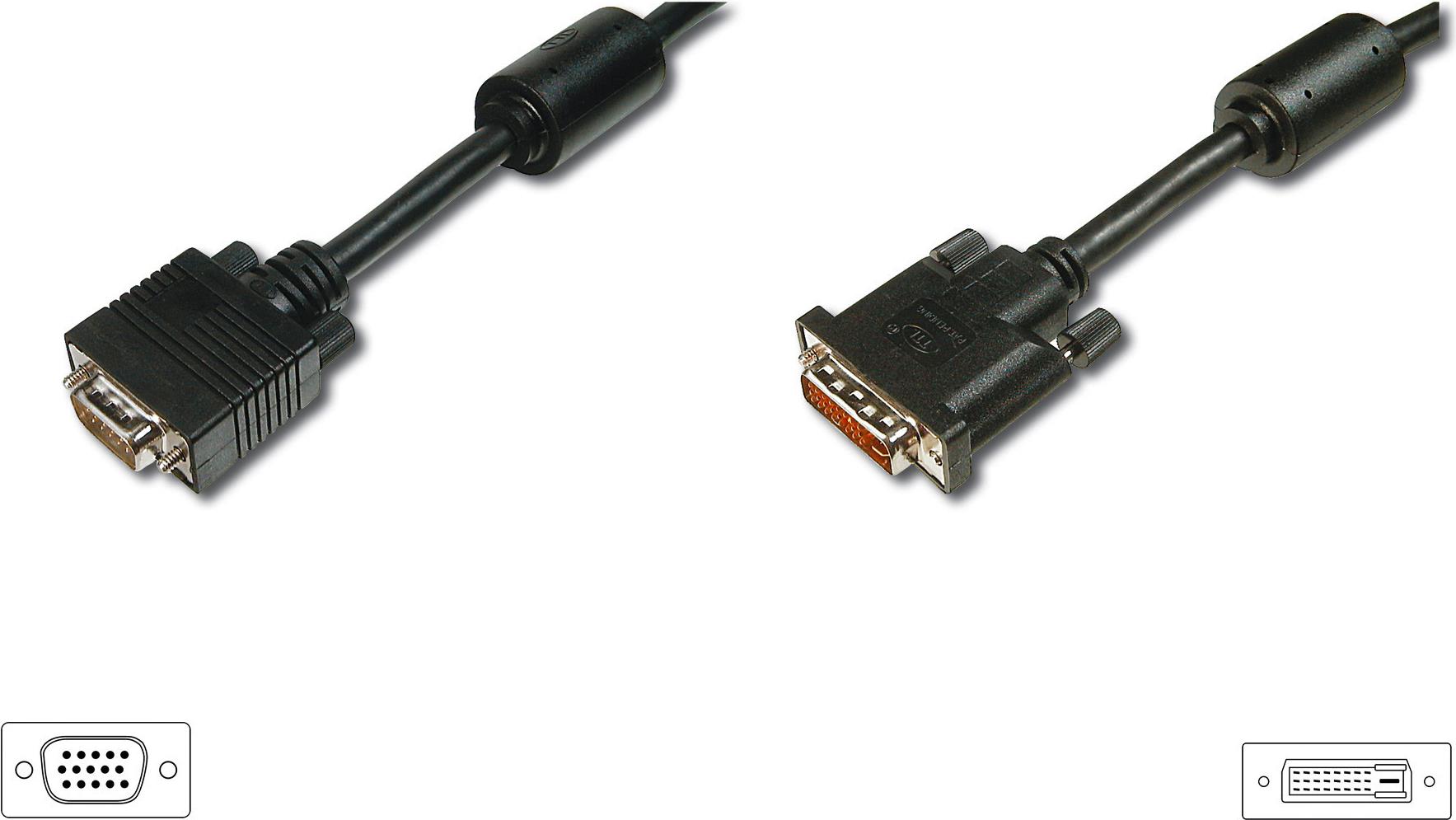Dieses analoge, HD Ready taugliche DVI Kabel (Dual Link), dient dem Anschluss von Audio/Video Geräten mit HD15 (VGA) Schnittstelle, wie beispielsweise PC, Notebook, Monitor, TV oder Beamer.