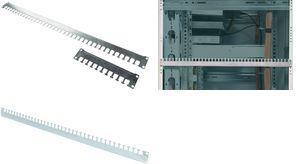 Die Kabelabfangschienen werden horizontal in der Schranktiefe des 483 mm (19")-Netzwerkschrankes verbaut. Durch die Befestigung am gelochten Rahmenprofil ermöglichen sie viel Spielraum zum geordneten Kabelmanagement. Einzelne Kabel oder ganze Kabelstränge können so einfach mittels Kabelbindern oder Klettband an den Hammerkopfprofilen befestigt werden. Die Schienen sind passend für alle DIGITUS® Netzwerkschränke der Unique- und Dynamic Serie.