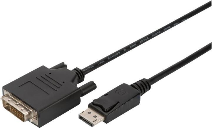 Assmann DisplayPort adapter cable. DP - DVI (24+1) M/M. 3.0m. w/interlock. DP 1.1 compatible. UL. bl. w/o shielding. 32AWG (AK-340306-030-S)
