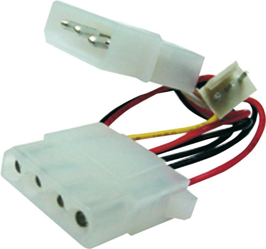 Adapter zum Anschluss von CPU-Lüftern mit 3-pin-Anschluss direkt an ein ATX/AT Netzteil. Besonders geeignet für PCs, deren Mainboards (AT) über keinen direkten Anschluss für einen CPU-Lüfter verfügen.