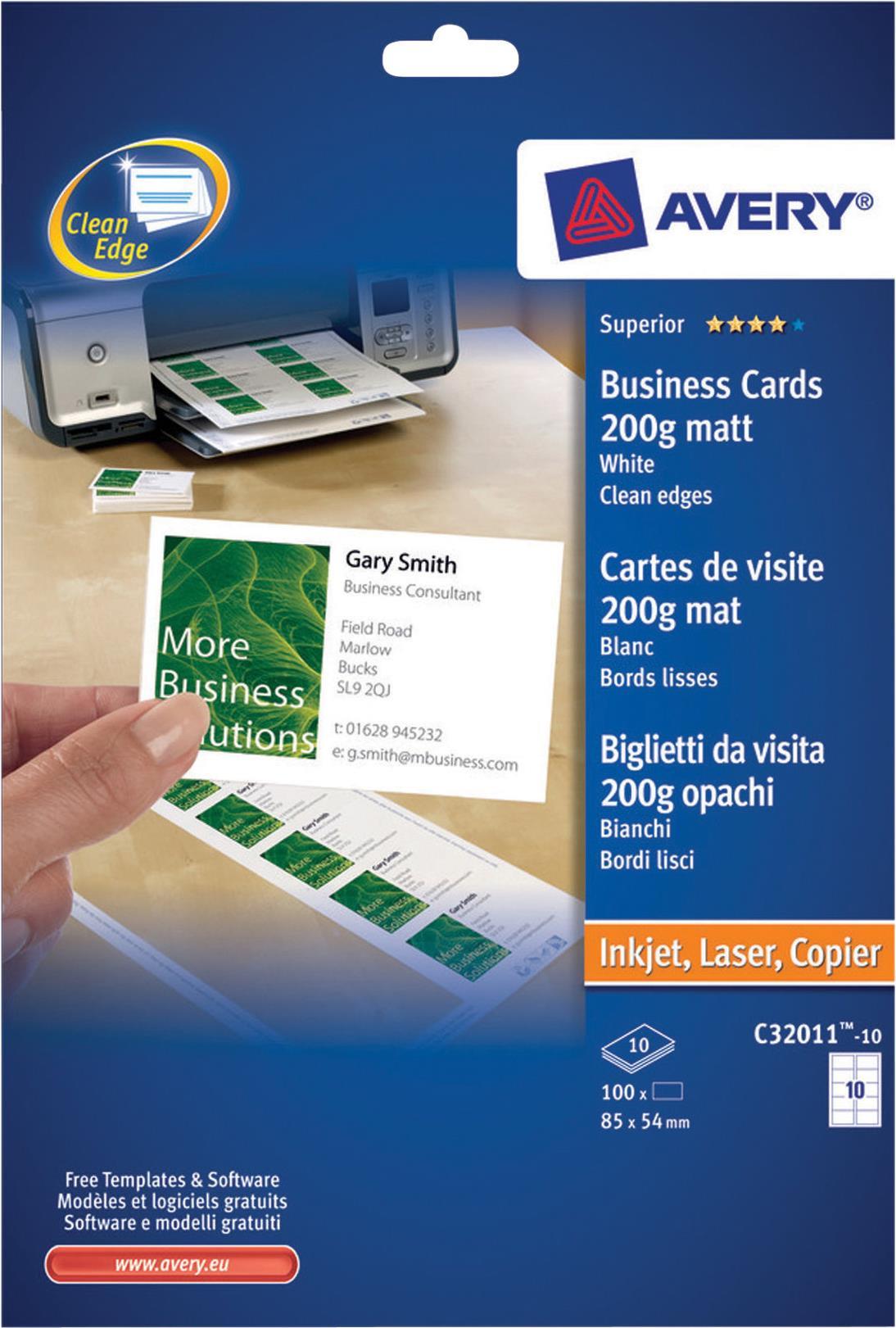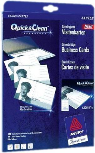 Avery Quick&Clean C32011 - Visitenkarten - weiß - 45 x 85 mm - 200 g/m2 - 100 Karte(n) (10 Bogen x 10) (C32011-10)