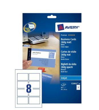 Avery Quick&Clean - Beschichtete Visitenkarten (matt) - weiß - 220 g/m2 - 10 Stck. 8) (C32015-10)