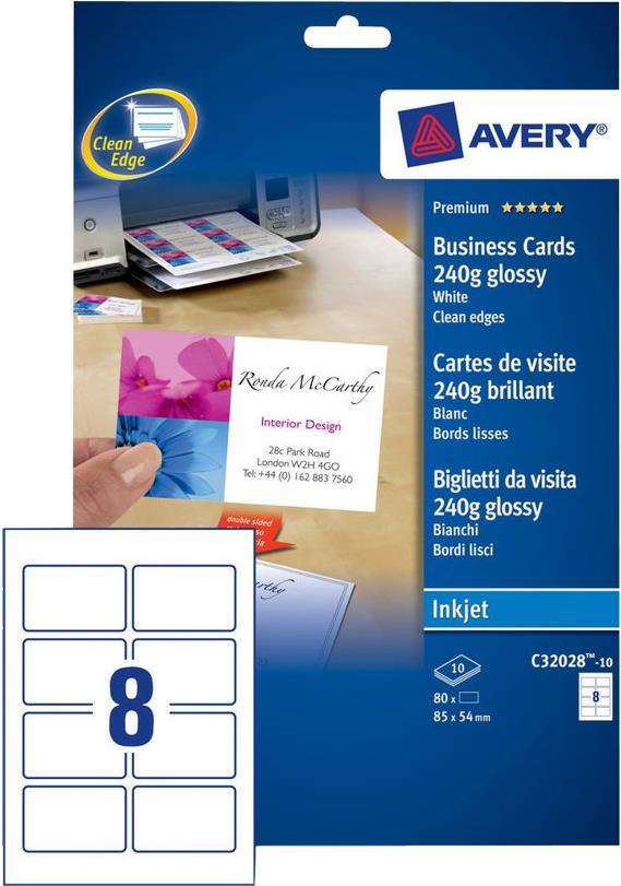 Avery Quick&Clean - Glänzende Fotovisitenkarten - weiß - 220 g/m2 - 10 Stck. 8) (C32028-10)