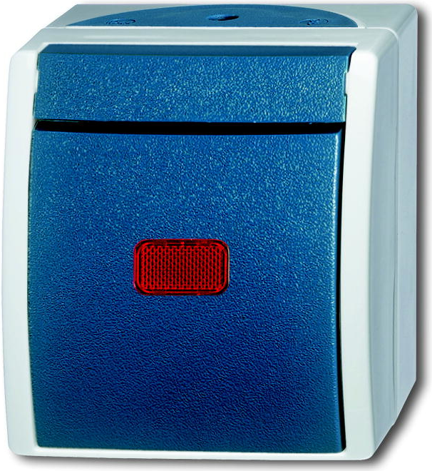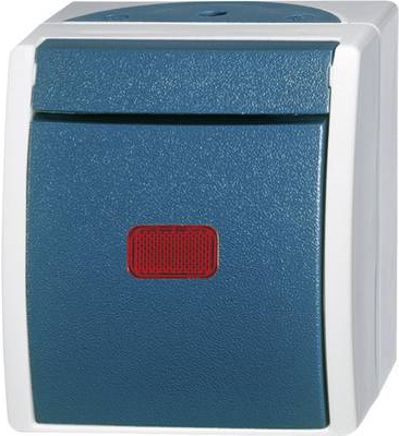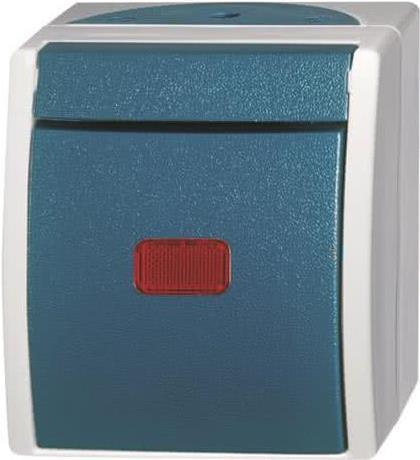 BJ - Ocean - Wippkontrollschalter Wassergeschützt rote Kalotte - AP *Glimmlampe* *grau/blaugrün* (2601/6SKW-53)