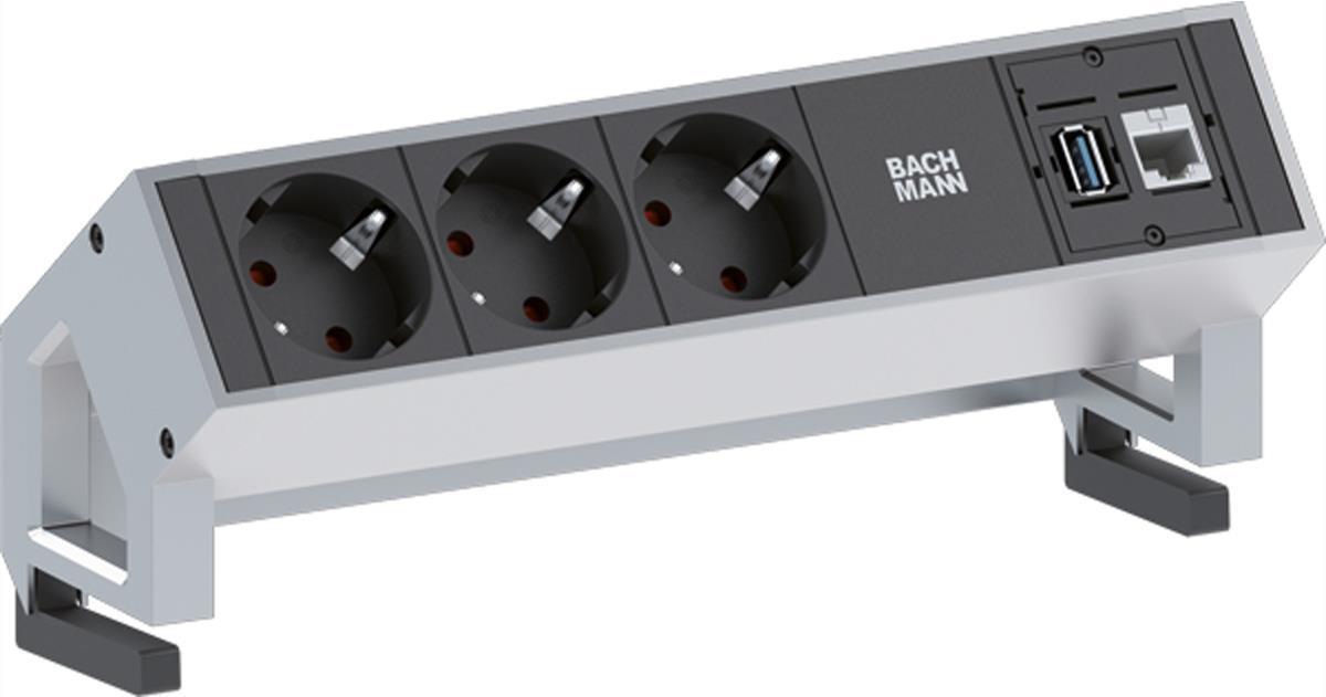 DESK Energieleisten sind Auftischeinheit für Arbeitsplätze mit Kombination aus Stromanschlüssen und Daten- oder Medientechnikmodulen.