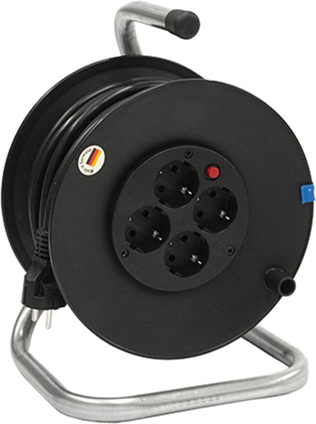 Bachmann Kabeltrommel - 25 m - 4-Fach Steckereinsatz - Schwarz