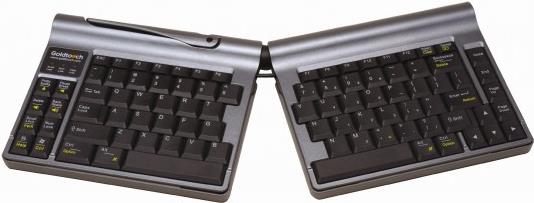 Die Goldtouch Travel Go2 ist eine ergonomische geteilte Tastatur, die sich in ihrem Neigungswinkel bis zu 30 Grad mühelos verstellen lässt und ein stabiles Set-up garantiert.