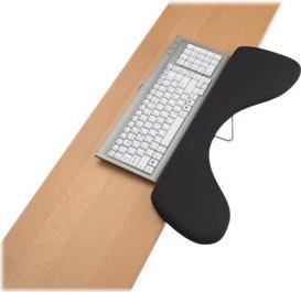 Die Unterarmstütze ist eine ergonomische Stütze, die zur Unterstützung Ihrer Unterarme entwickelt wurde. Die Unterarmstütze lässt sich schnell an der Vorderseite Ihres Schreibtisches befestigen, wodurch eine gepolsterte Schreibtischverlängerung entsteht, die perfekt ist, wenn Sie zusätzliche Unterstützung benötigen. Die Auflage eignet sich hervorragend für Personen, die keine Armlehnen an ihrem Stuhl haben, und hilft, Arme und Handgelenke in einer neutralen Position zu halten. Die gepolsterte Oberfläche ist weitaus komfortabler als die harte, kalte Oberfläche Ihrer Tischplatte, aber mit ihrem abwischbaren Material auch genauso hygienisch.