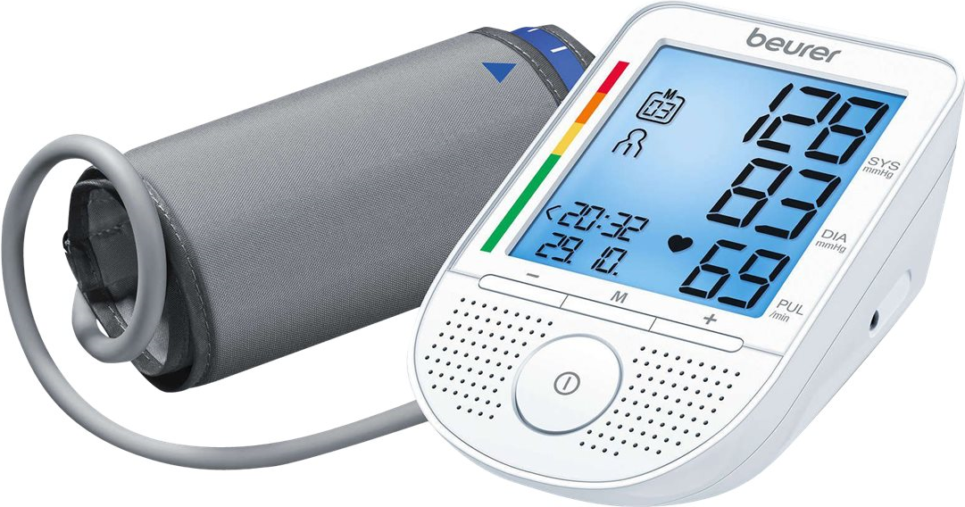 Beurer Lautstärke regelbar, Sprache ausschaltbar, Durchschnittswert allergespeicherten Messwerte und Morgen- und Abendblutdruck der letzten 7Tage, Blutdruckpass, Netzteil separat erhältlich (656.28)