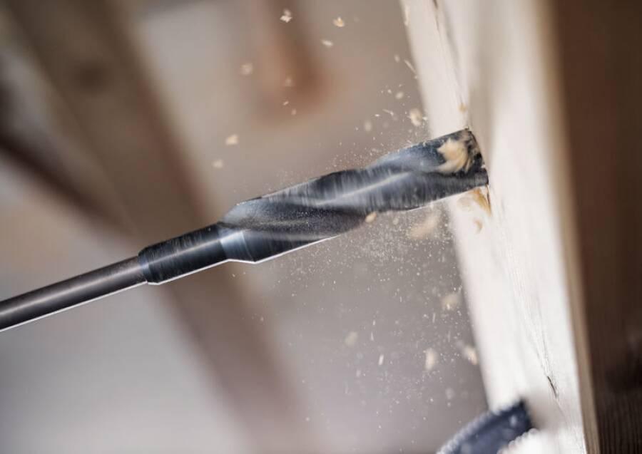 Robuster Installationsbohrer für Verschalungen. Der Bohrer und das Schaftende sind verschraubt - für ein geringes Bruchrisiko und einen optimierten reibungslosen Betrieb. Die auslaufende Nut und der Versatz zwischen Bohrer und Schaftenden verhindern ein Verklemmen auch bei feuchtem Holz, während genügend Stärke vorhanden ist, um im Holz enthaltene Nägel zu durchschneiden. Bohrer mit extra langem Schaft für ein vielseitiges Bohren in mehrschichtigen Baumaterialien oder Sandwich-Materialien, z. B. für das Bauhandwerk (Verschalung) und Innenmontagen, Klempnerarbeiten, Heizungs- und Elektroinstallation. Für Verschalungen, Platten, Bretter, Balken, Gipsplatten, leichte Baumaterialien, Isolierungen und Metall, z. B. Metallplatten, geschichtete Materialien mit Stahl, Aluminium oder Formblech.