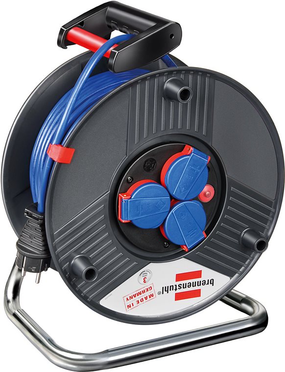 - Ergonomischer Handgriff mit Achse für perfekte Kabelführung beim Auf- und Abrollen.