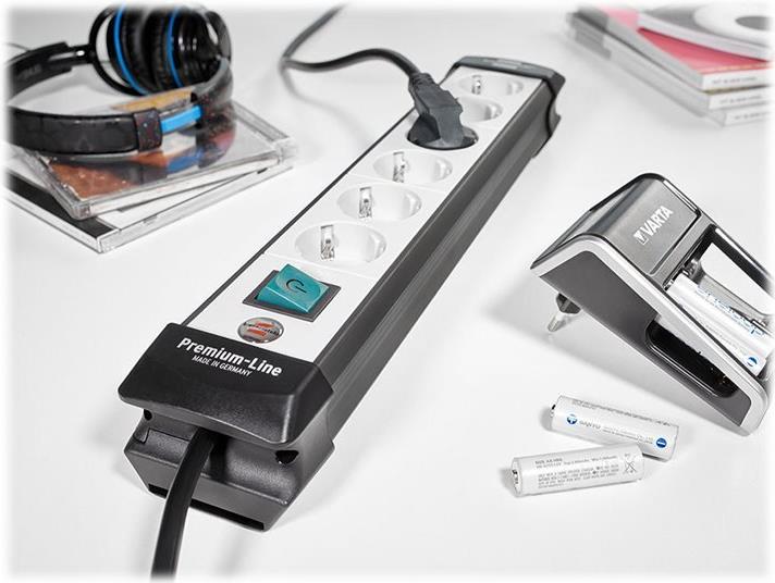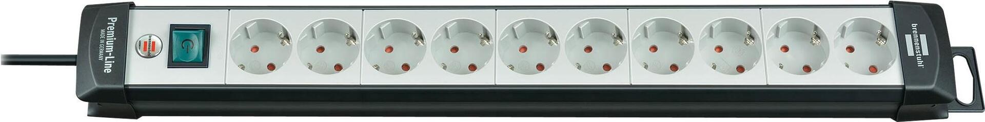 • Brennenstuhl Premium-Line 10-fach schwarz/hellgrau 3 m; Premium-Line Steckdosenleiste 10-fach schwarz/lichtgrau 3 m H05VV-F 3G1,5; Mit Schalter (1951500100)