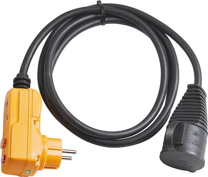 - Mit FI-Stecker IP 44 und spritzwassergeschützter Kupplung.