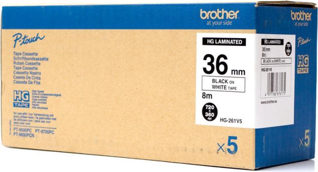 Brother HG251V5 - Laminiertes Band - Schwarz auf Weiß - Rolle (3,6 cm x 8 m) - 5 Rolle(n) (HG261V5)