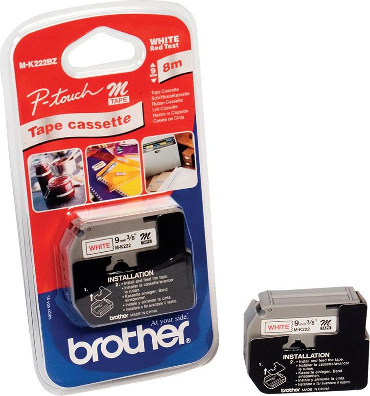 Brother MK222 - Nicht-laminiertes Schriftband - Rot auf Weiß - Rolle (0,9 cm x 8 m) - 1 Rolle(n) - für P-Touch 100, 110, 65, 75, 85, BB4 (MK222BZ)