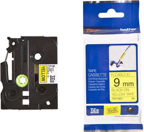 Brother TZFX621 - Flexitape - Schwarz auf Gelb - Rolle (0,9 cm x 8 m) (TZFX621)